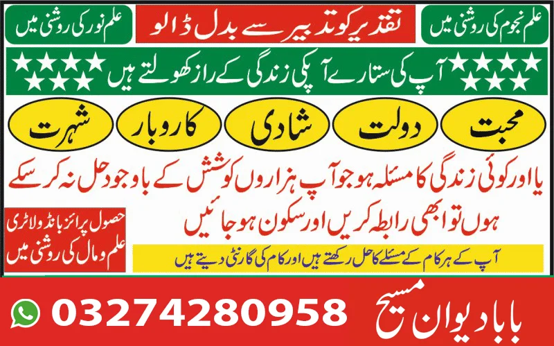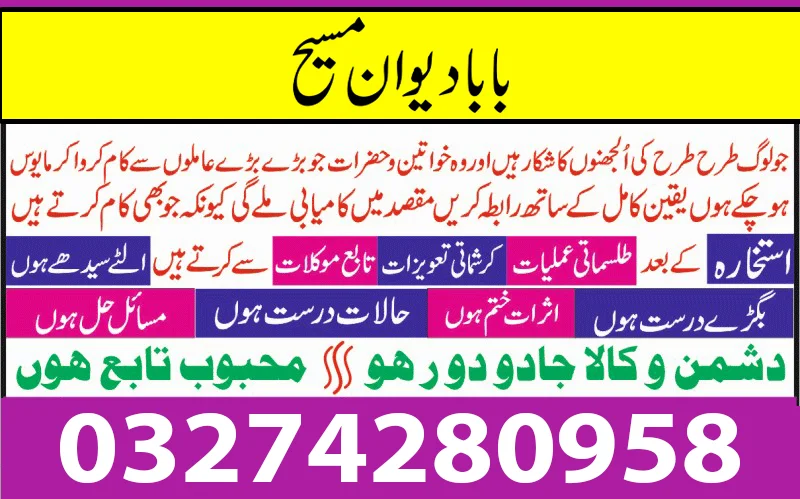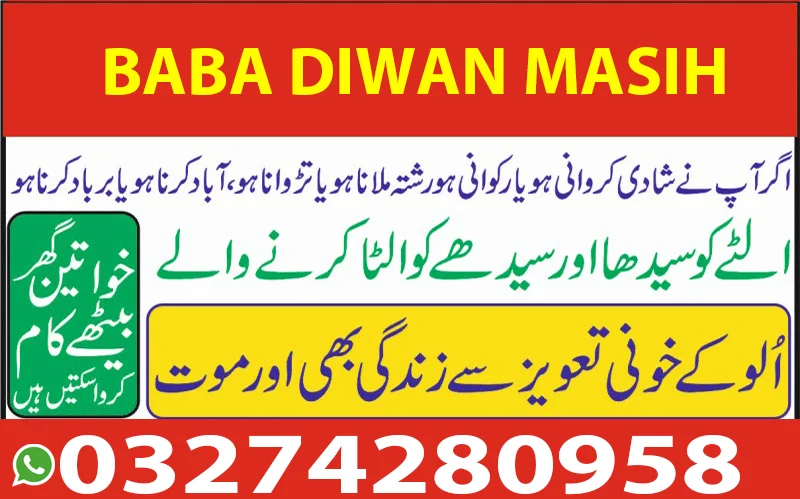 Baba Diwan Masih Expert in Rohani Amliyaat, Love Marriage Solutions, and more. Call Now WhatsAPP Amliyat for Love Family Problems Manpasand Shadi Professor Diwan Masih – Expert Spiritual Healer Professor Diwan Masih provides helpful astrology services, offering guidance in love, marriage, relationships, and horoscopes. +93274280958 Contact Now For expert spiritual guidance and effective solutions to life’s challenges, including love, marriage, family, and business problems. Call now OUR SERVICES Chat on whatsapp Chat on whatsapp Chat on whatsapp Chat on whatsapp Chat on whatsapp Chat on whatsapp Chat on whatsapp Chat on whatsapp Chat on whatsapp Chat on whatsapp Disclaimer: There are no guarantees that every person using this service will get their desired results for sure. Astrological results depend on a lot of factors and the results may vary from person to person.